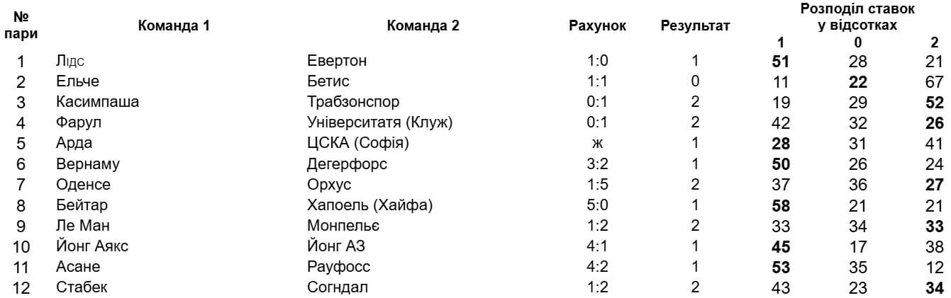 Тим часом "Лідс" дотиснув "Евертон" завдяки сумнівному пенальті на 84 хвилині (51%). Це один із п'яти матчів, у якому показник "угадуваності" перевищив 50%.