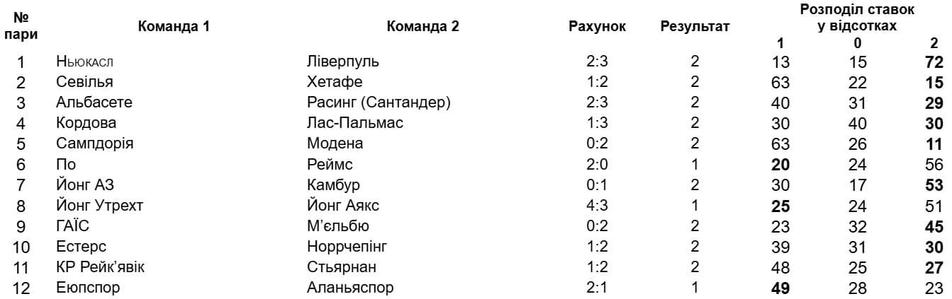 Тепер до несподіванок, яких було відразу три. Найбільше здивував результат матчу "Сампдорія" - "Модена", в якому впевнену перемогу здобули гості (11%). "Севілья" в рідних стінах поступилася "Хетафе" (15%), а "По" у французькій Лізі 2 спокійно розібрався з "Реймсом" (20%).